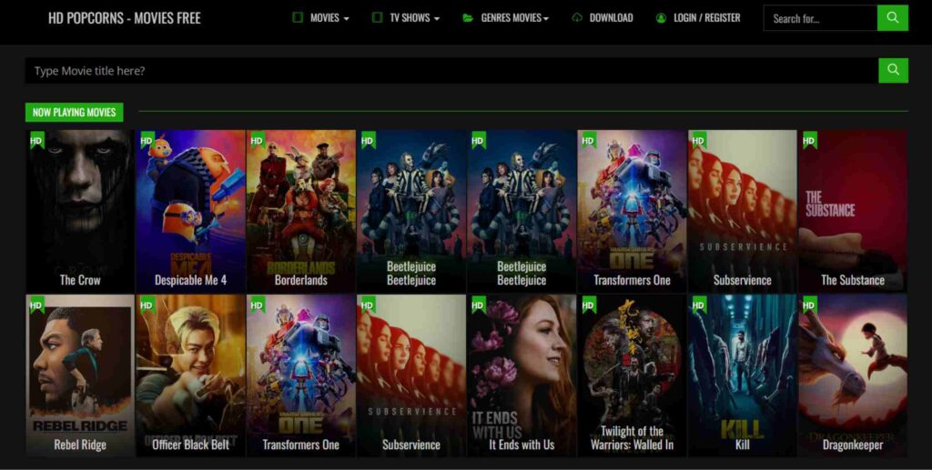 HD Popcorns is another popular choice for those looking to stream movies, free of charge. This site has a massive collection that spans from timeless classics to the latest blockbusters, all available for free. The best part? There is a Download option so you can go off-line and still able to stream movies and TV shows in high-definition quality.